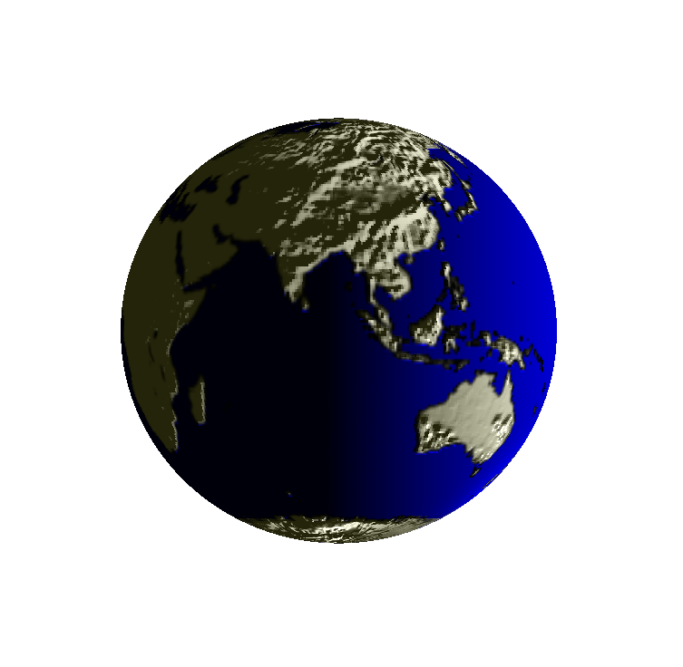 The next task was to put a texture lighting on the same figure as in the previous task. I figured, that if you form the polygon in a certain way, you can build a sphere. So I found a picture of the Earth's surface on the inner uni network based on a peer to peer network (you could find anything there, including gay porn, ah sweet good old days), made a lighting texture out of it and so my masterpiece saw the light for the first time: